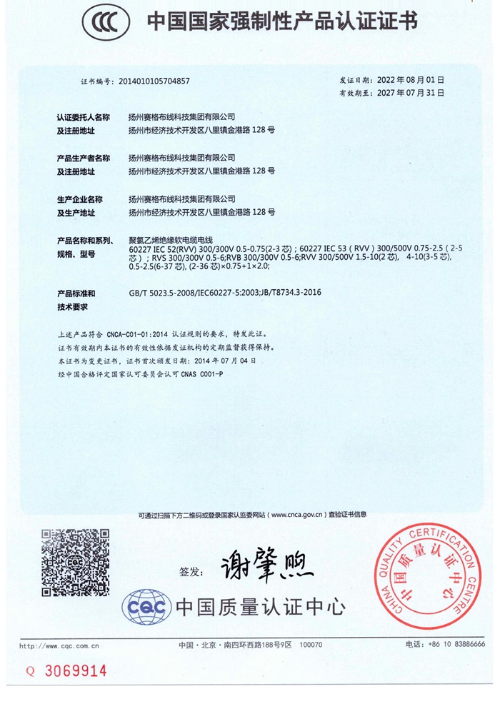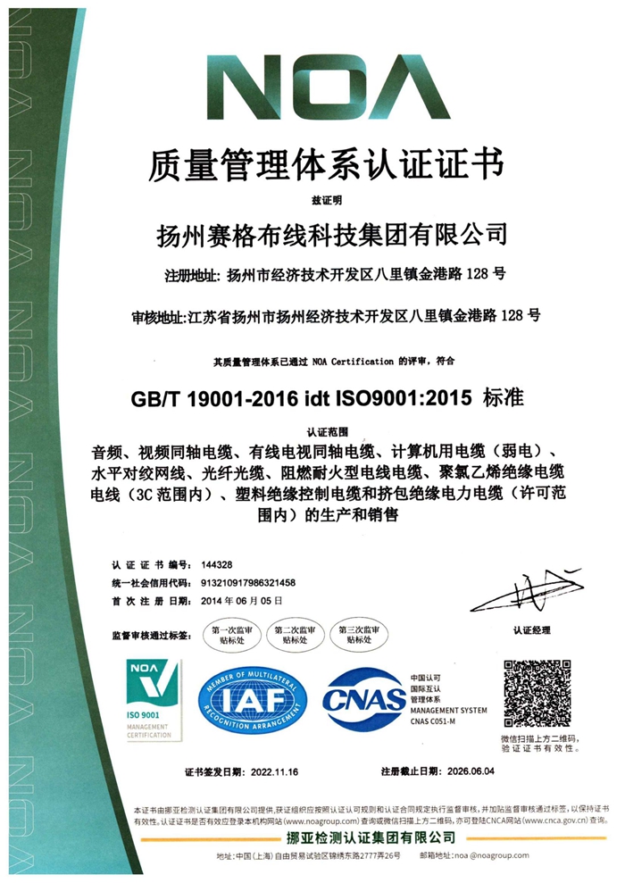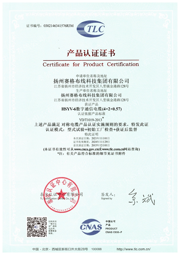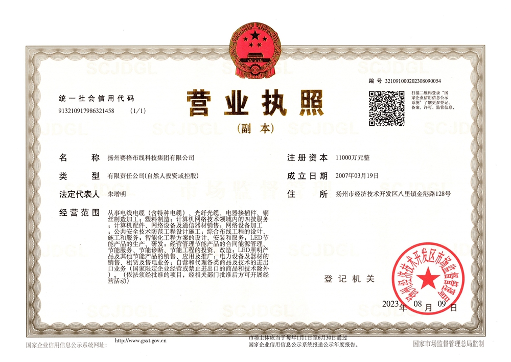 “賽格集團”位于美麗的揚州,公司占地面積106800平方米,固定資產(chǎn)20000萬元,職工近千人,其中各類專業(yè)技術(shù)人員過百人,系中國安全防范產(chǎn)品行業(yè)協(xié)會理事單位。公司擁有各種先進的綜合布線產(chǎn)品及線纜制造和實驗檢測設(shè)備,產(chǎn)品嚴格按照國家標(biāo)準(zhǔn)或行業(yè)標(biāo)準(zhǔn)組織生產(chǎn),并已獲得國家質(zhì)量認證中心CQC頒發(fā)的CCC證書和上海挪亞檢測認證集團有限公司頒發(fā)的ISO9001:2015證書,泰爾認證中心頒發(fā)的“泰爾認證”等!